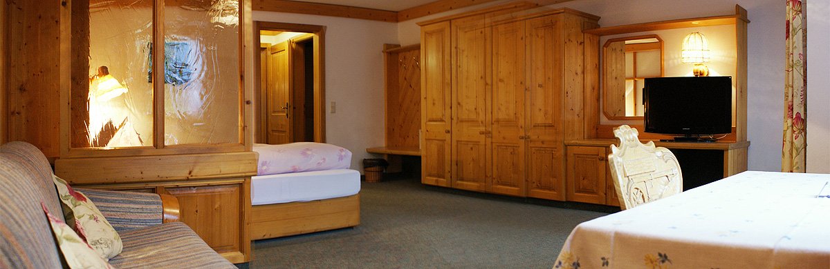 Zweiräumiges Familienzimmer (für 3 bis 4 Personen) mit Wohn- und Schlafteil, Balkon, Bad, getrenntes WC